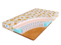 Жесткая сторона - слой кокосовой койры пропитанной натуральным латексом. Кокосовое волокно - материал, который придает идеальный баланс жёсткости и прочности, а также обладает хорошими ортопедическими свойствами. Кокосовая койра не вызывает аллергии, что важно для гигиены сна.