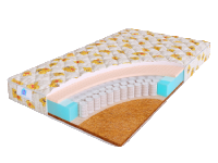 Одна сторона - кокосовая койра пропитанная натуральным латексом. Кокосовое волокно - материал, который придает идеальный баланс жёсткости и прочности, а также имеет хорошие ортопедические свойства. Кокосовая койра не вызывает аллергии, что важно для гигиены сна.