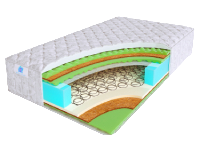 Второй наполнитель матраса - это натуральная кокосовая койра. Такой материал в матрасе придает идеальный баланс жёсткости и прочности, а также имеет хорошие ортопедические свойства. С одной из сторон матраса дополнительно используется наполнитель Orto Foam - прочный синтетический материал, обладающий ячеистой структурой и высокими ортопедическими свойствами. Основой матраса является один из самых популярных и проверенных пружинных блоков - блок Боннель.