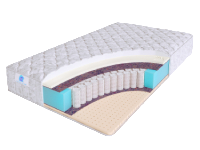 Наполнение матраса с одной стороны - слой упругого термовойлока. Термовойлок снимает статическое напряжение, это жесткий материал, который обладает высокой степенью упругости и усиливает ортопедический эффект блока независимых пружин. Сторона дополнена слоем из материала Memory в 2 см, который запоминает форму тела спящего и дарит особый комфорт.