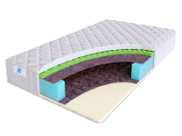 Наполнители матраса: с одной стороны - это современный ППУ, вторая же сторона - это пена Ergo Foam. ППУ - это инновационный пенополиуретан, материал, который обладает превосходными ортопедическими свойствами. Ergo Foam - это универсальная экопена, которая по своим характеристикам ничем не уступает натуральному латексу. Поверхность экопены - рифлёная и с перфорацией, для создания повышенного комфорта и хорошей вентиляции.У данной модели матраса используется чехол из синтетического жаккарда.